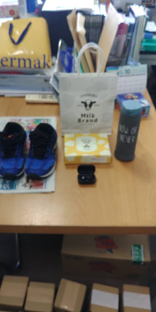 1.運動靴(青 名前:大城 瑠惟 名前の部分は不鮮明で、多分「瑠惟」です。)